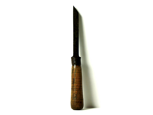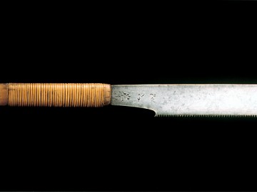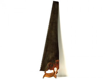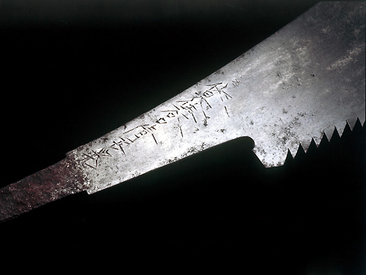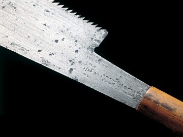 二代宮野鐵之助(1901-1996)是播州三木的鋸齒鍛造。11歲開始幫忙家業,1938年襲名二代宮野鐵之助。據說他充滿了鍛冶的才能,很快就超越了兄弟姐妹的實力。一生都致力於保護古式傳統技術,並將其技術傳達給構成。 照片中的雙刃鋸是1954年為了神戶的棟梁笹瀨善雄而鍛煉出來的。