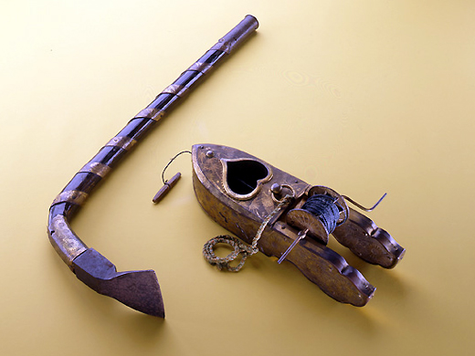 不丹是夾在印度和中國之間的小國。在不丹、印度北部、尼泊爾等喜馬拉雅山脈的山腳下,生活著建造木造寺院和住宅的民族。照片上的右手是絲卷,左手是木槌,具有原始的力量這一點很有趣。