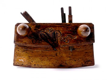 朝鲜傳統的墨壺大多是以絲卷部為方形或立方體,墨池部為圓形或球形,以絲頭為獸頭的3部分構成的。另外,在下部切墨保存用的溝也是其特徵之一。照片是以傳說中的動物海泰為主題的。