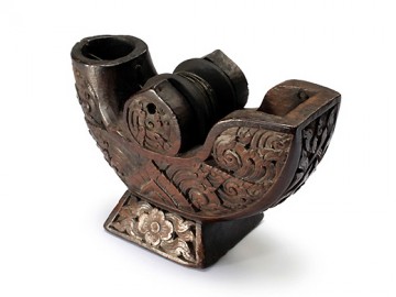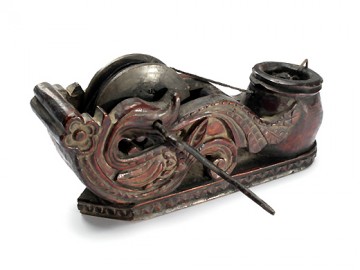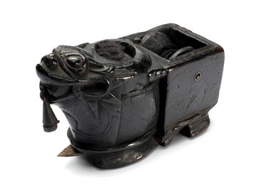 照片是在泰國中部收集的墨壺中以神鳥為主題的。泰國的墨壺的構造和功能與日本和中國沒有區別,但是可以看出重視主題造型的傾向,其他還有猴子、青蛙、兔子的形態雕刻而成。