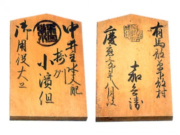 江戶時代的建築工程是由幕府和藩的作事部門控制的,但是對於五畿內(山城、大和、攝津、河內、和泉)、近江這六個國家,在草創期有功的中井家擔任了這個職務。管區內的木匠組在得到中井家的認可後才能參加工程,許可證是證明那個資格的東西。