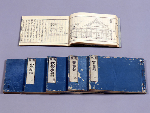 作為匠家秘傳的木割術到了江戶時代就出版了,廣為人知。1717年(1717)開板的本書是6本1組,由“宮雛形”、“武家雛形”、“棚雛形”、“數寄屋雛形”、“小坪規矩”、“規矩追加”組成。宮、武家、棚三本書解題了1658年(1658年)發行的新編三雛形,內容沒有變化。
