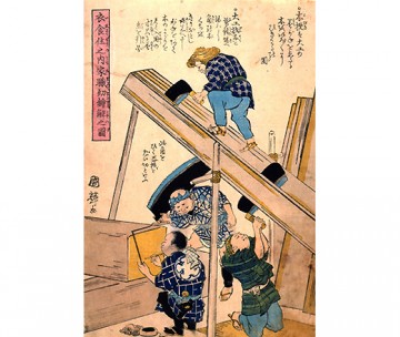 作為面向學童的解說圖,明治初年文部省出版的圖集。生動地描繪了江戶末期到明治初期的工匠們的樣子。描繪了使用墨壺的墨掛、朱娜吊、鋸子的木材、鑿子的仕口孔雕刻、刨削等基本的木匠工作。