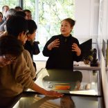 對於客人的提問,石本先生一個人一個人認真地回答。從作品中可以看出縝密、纖細,平時是非常親切的人品。 |