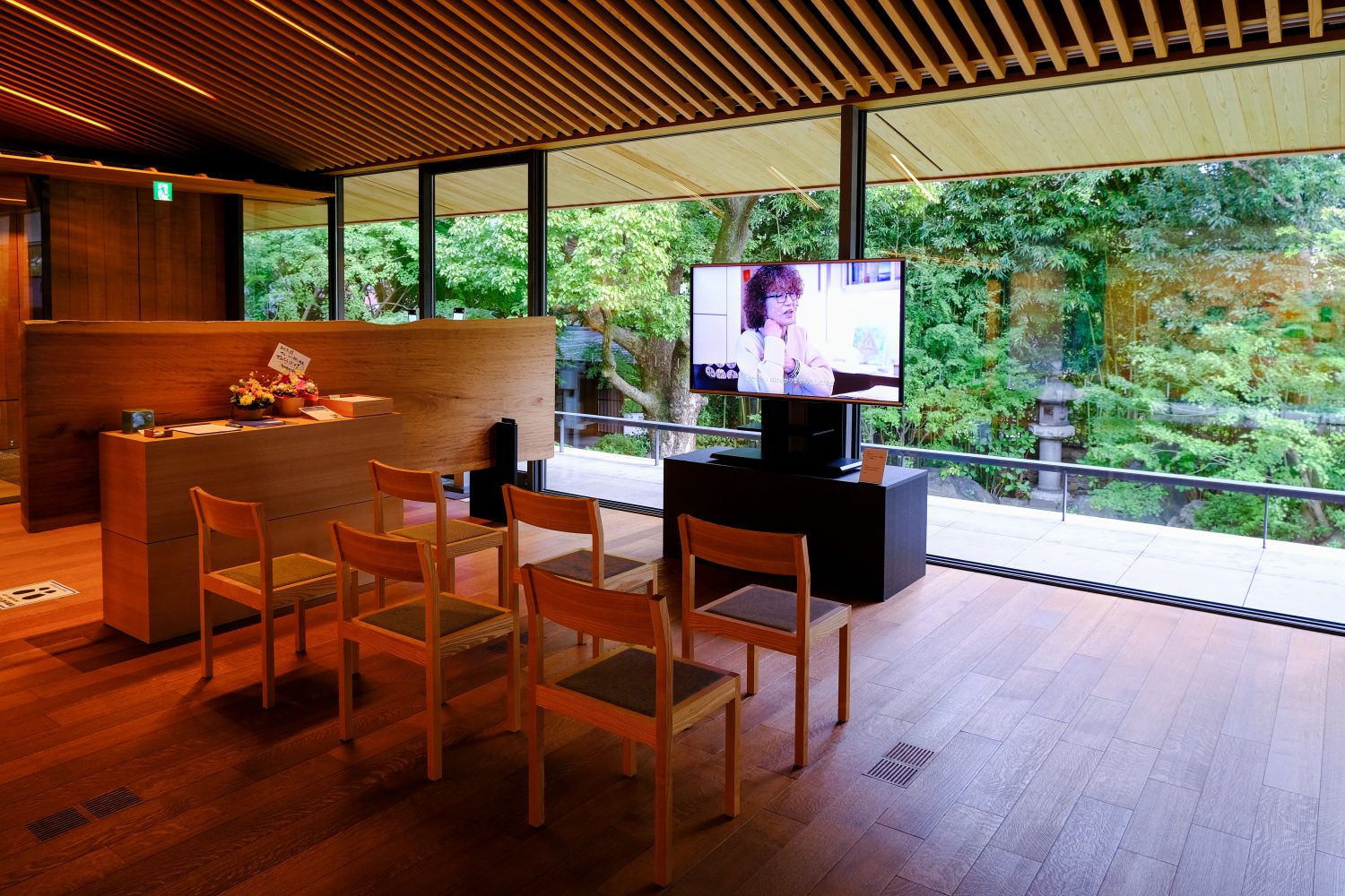 ![]() 作品不僅在1F大廳,在館內各處都有展示。1樓露台上設置了從京都寺廟的庭院中獲得靈感的“水面景色”。 |