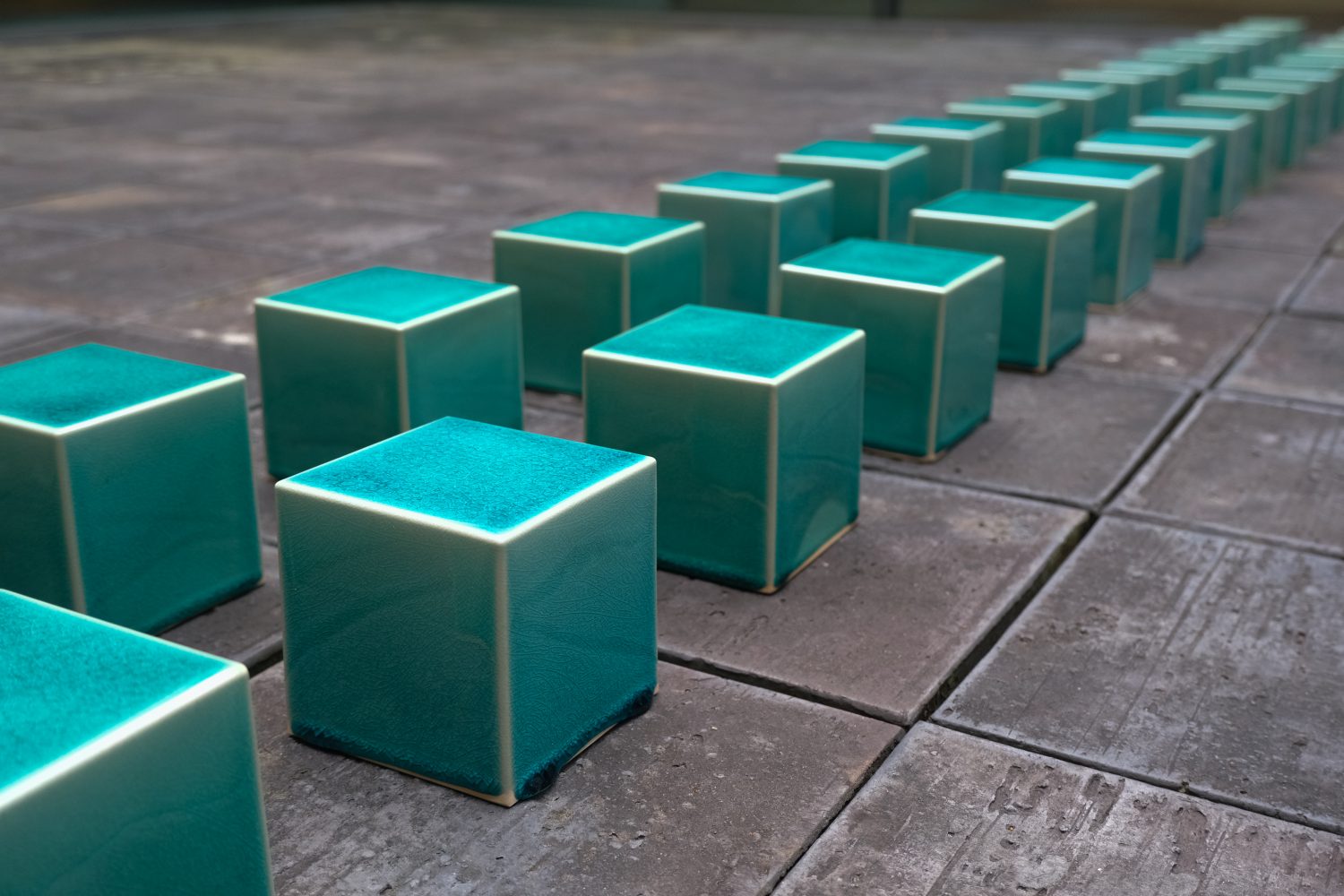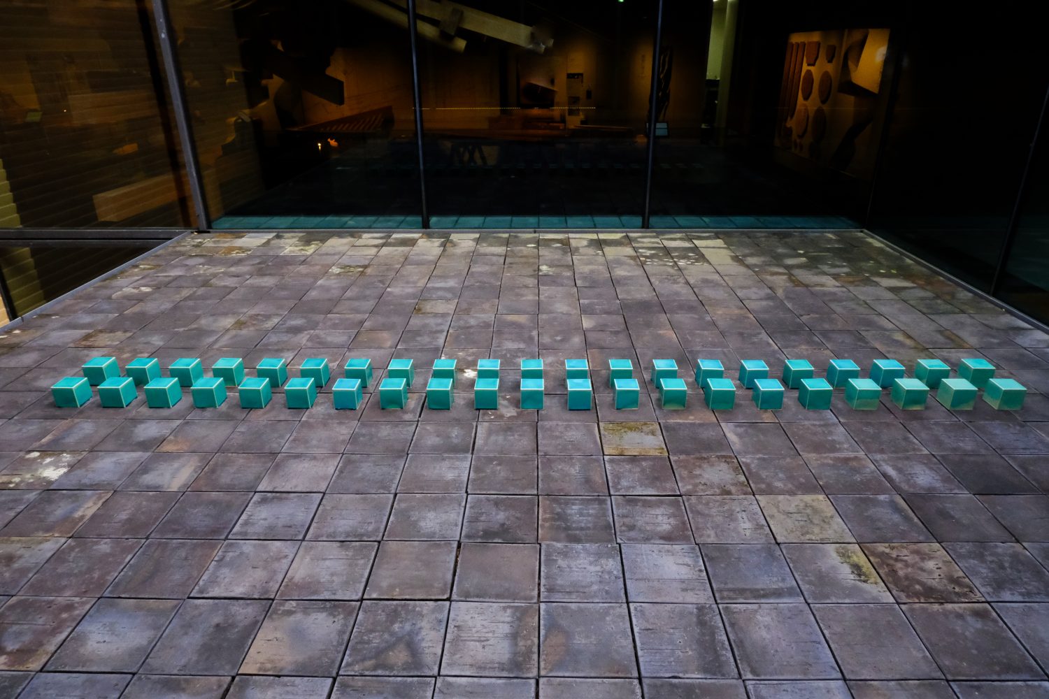 ![]() ![]() B1F瓦敷的院子裡展示著立方體排列的“海風之路”。與現有建築的和諧值得一看。另外,下雨天看的話,可以享受到不同的氛圍。 |