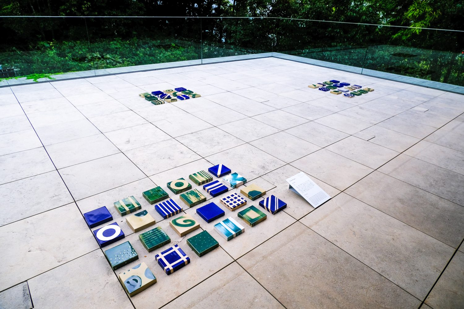 ![]() 最底層的B2F也有作品。這是一部在鋪成線狀的石板上,描繪了一條瓷磚線的“冒險之路”作品。這些都是以阿茲雷喬為首的裝飾瓷磚,為建築空間增添色彩,是竹中大工道具館建築特有的展示。請務必近距離觀看。 |