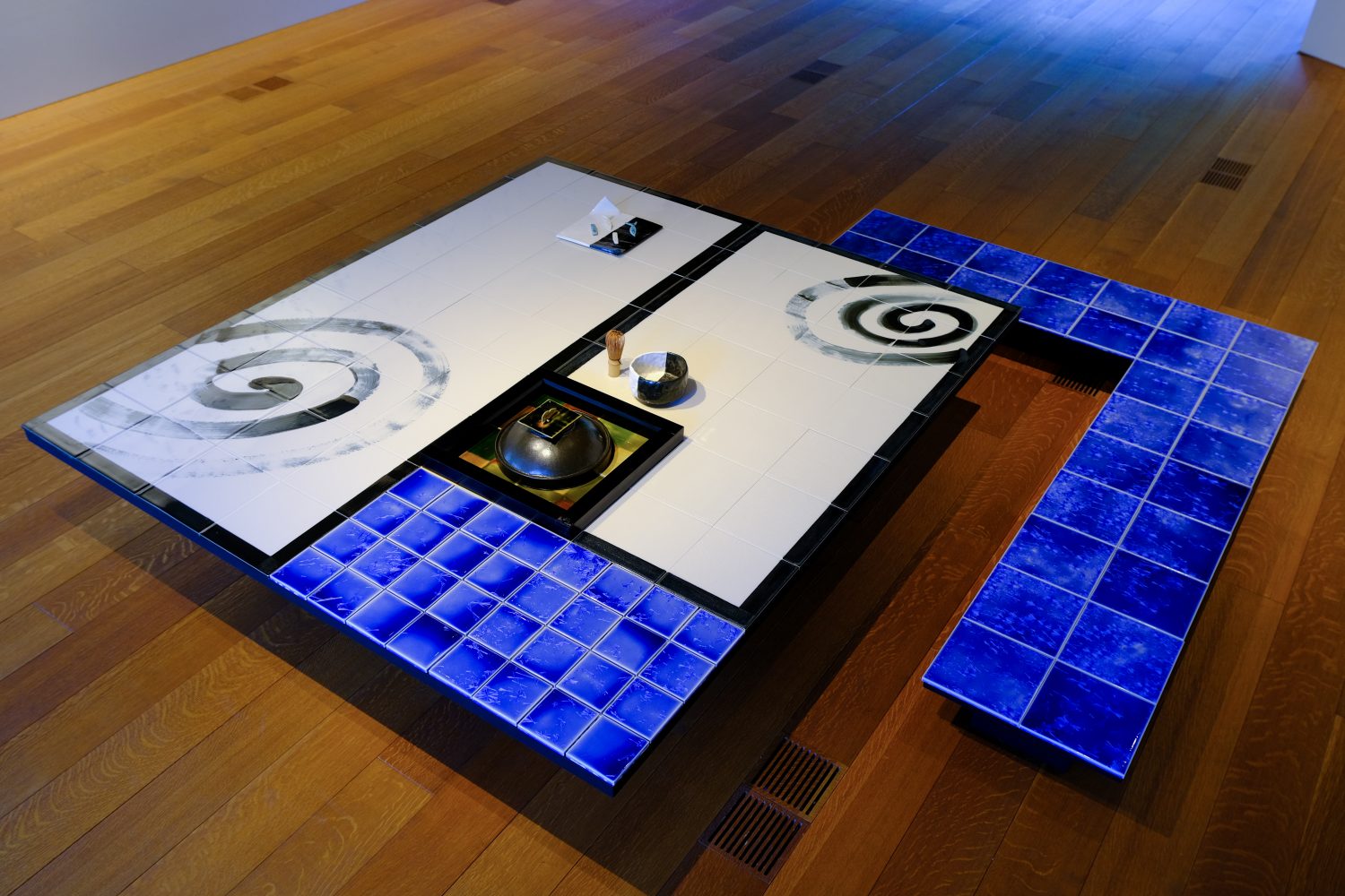 我們將以照片報告的形式呈現2022年10月1日開幕的“石井春-阿茲雷焦與空間”展的情況。 ![]() 會場以1F大廳為中心配置在陽臺和中庭等各處。首先映入眼簾的是葡萄牙的阿茲雷焦和日本瓷磚混合而成的作品《航海餐桌》。這是一部以大航海時代在波浪中搖曳的帆船中的餐桌為印象的作品。 |