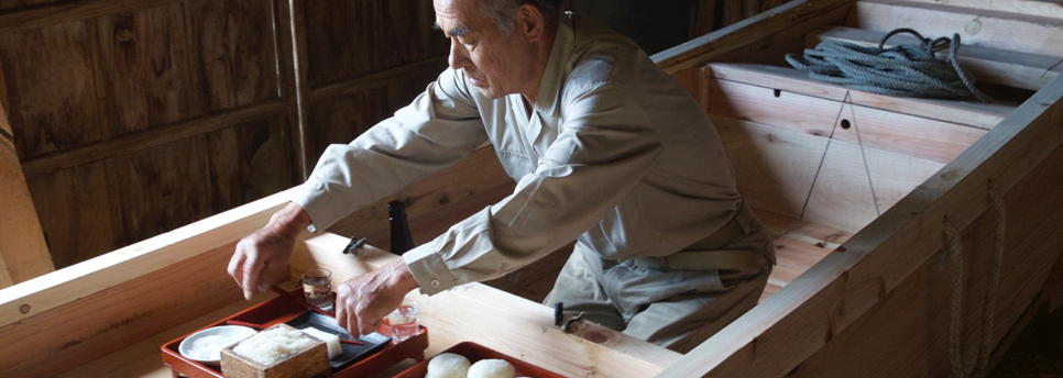 | | 進行現場表演製作的船的下水儀式。作為船批發的儀式由神官掌管,進水儀式之後實際乘船。 | |