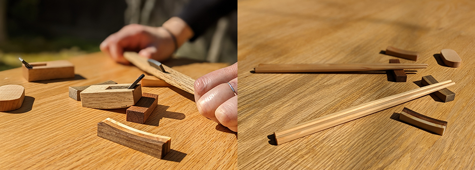 製作絲柏的筷子和層疊的夾子。