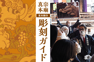 在東本願寺,明治時代從尾張、京都、井波等地趕來的全國屈指可數的雕刻師親手雕刻的精美雕刻隨處可見。其中井波的雕刻師擔任東本願寺重建事業的雕刻主任等,非常活躍。配合企劃展,繼承了先人想法的現代井波雕刻師,為大家介紹東本願寺的許多雕刻。這次的導遊旅行中,真宗大谷派(東本願寺)的僧侶也同行,從僧侶的視角也可以聽到。
