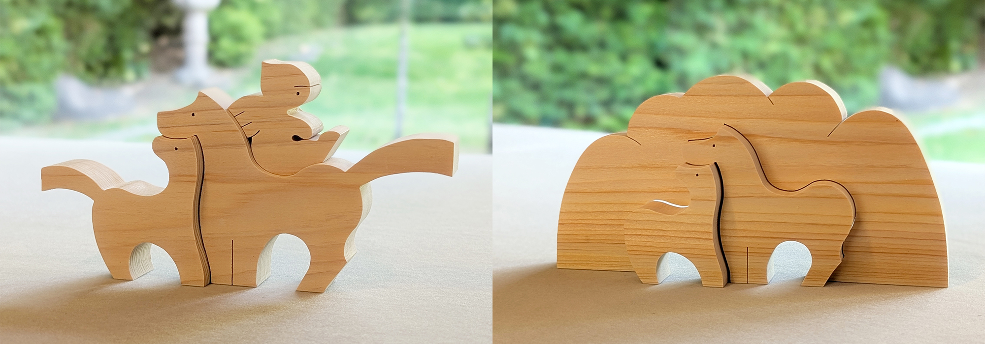 用電動線鋸製作組木作家小黑三郎設計的天幹地支人偶(馬)。