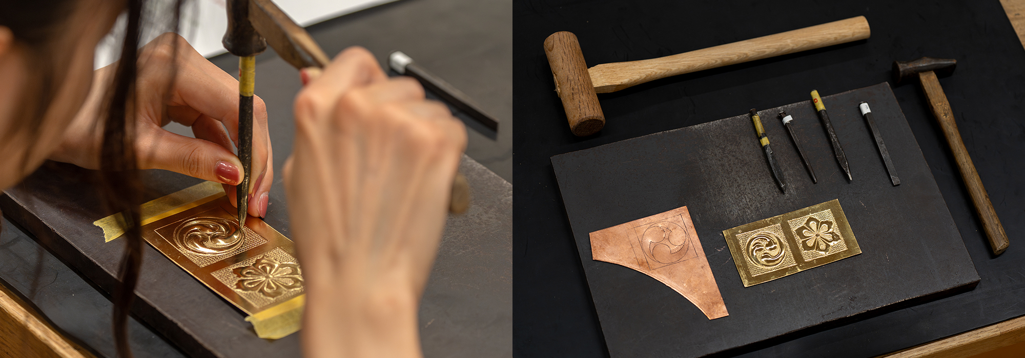 特別邀請負責日光神社和寺院的腐蝕金屬零件修復的工匠,開展雕刻金的研討會。在研討會上,首先要有用蝗蟲雕刻直線、曲線和簡單的圖案的經驗。然後,在事先裝有花紋的銅板上一個一個地打進小七子的顆粒,完成一次性金屬零件作品。