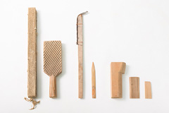 在獸面瓦角,以製作古代獸面瓦的形式為首,還介紹了鬼師使用的製作工具。