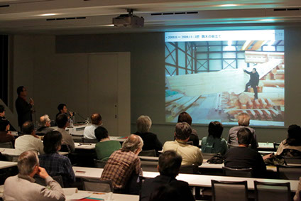 在這次演講會上,以棟梁自己參與的工作為中心,一邊展示豐富的現場照片,一邊認真地進行了說明。演講會結束後,提問也很多,可以看出大家的關心度很高。