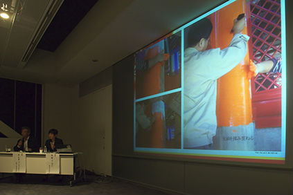 接著介紹了除木匠以外的各種工作。瓦、石頭、彩色等,各自都有專業的工匠,沒有他們的協助就不能施工。這是展覽會上沒有介紹過的珍貴內容。