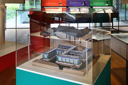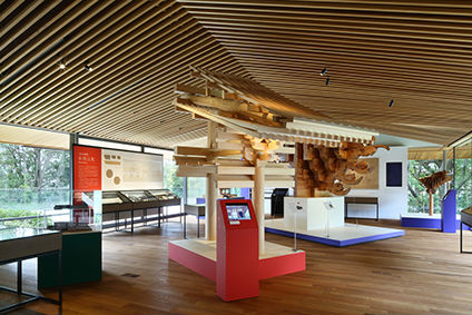 展示會場是剛剛重新開放的新館,1樓大廳。這是一個利用木架天花板和開放空間的展示。