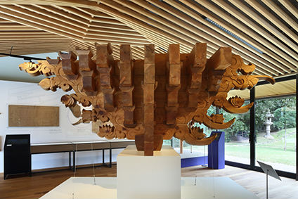 由南韓申鷹秀棟梁製作的實際尺寸大小的組合模型。由樹齡200年以上的優質赤松製成,可以欣賞到作為南韓建築特徵的華麗的組裝物雕刻。