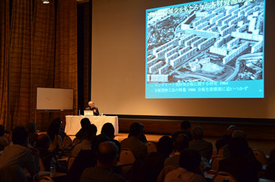 接下來,在內田先生的演講中,我們就戰後的木匠工作進行了說明。特別強調的是,製作鋼筋混凝土建築不可或缺的模具的木造木匠的重要性。在現場製作模具和建造原尺寸的木造建築是一樣的,這樣的話突如其來的指出。