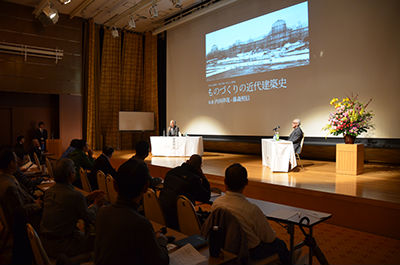 11月8日(星期日),邀請了內田祥哉先生和藤森照信先生,舉辦了今年的“技能和心”演講會。標題是《製造的近代建築史》。為紀念本館舉辦的企劃展“近代建築製作的挑戰”展,兩位作為研究者和建築師都十分活躍,從技術和工匠的角度講述近代建築的企劃。