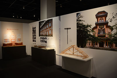 會場是豐田產業技術紀念館的特別展覽室。從左側入口到右側出口,繞著展示一圈,就可以追溯到從幕府末期到昭和戰前的建築技術的變遷。