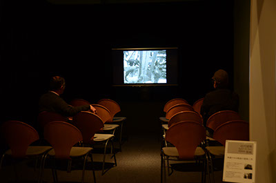 在劇場角,放映著大阪煤氣大樓和明治生命館的工程影像。乍一看是很淡淡的影像,但是充滿手工感的施工樣子,現在無法想象的危險工作等,有趣的場面一個接一個。