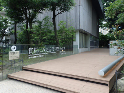 會場是位於東京湯島的國立近代建築資料館。為了防止日本近現代建築相關資料的海外流出和散失,由文化廳設立。因為與三菱財閥創業家邸宅所在的舊岩崎邸庭園相鄰,所以推薦在參觀了近代住宅建築名作岩崎邸(J・禿鷹設計、重要文化遺產)後參觀本展。照片是從岩崎邸方向的入口。從這裡開始需要舊岩崎邸庭園的入場費,請注意(湯島地方聯合政府大樓方面免費)。