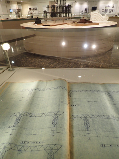 這是世博會·節日廣場大屋頂的立體桁架部分的設計圖。立體桁架還展示了結構模型。
