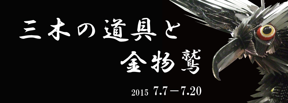 | 展覽會概要 | 主 催:三木工業協同組合青年部、金物鷲保存會 會 期:2015年7月7日(星期二)~7月20日(星期一・祝日) 會 場:竹中大工道具館1F大廳 入場費:免費(參觀常設展覽需要入館費) 開館時間:9:30至16:30(入場時間為16:00) 休館日週一(節假日則為第二天) |