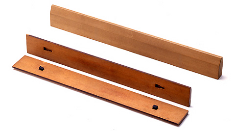 主要用於調查平面的正確與否。特別是為了確認刨台下端是否正確,必須要有的尺子。由於這個尺子的用途,需要小端始終保持完整的水平。因此,將兩塊板做成一組,兩個小端互相磨合,試著透過光線,就可以簡單且準確地檢查尺子的表面了。兩張可以用達沃疊加,取出。材質多使用瘋狂少的檜木正木紋。