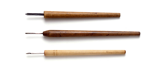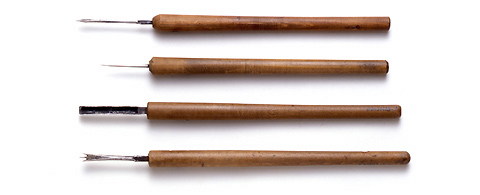 (1)三目錐:在開釘孔時使用。 (2)四方錐:用於打開木釘孔或竹釘孔。 (3)壺錐:用於打開埋木孔或粗柄孔。 (4)老鼠牙錐:在竹子等上打孔時使用。