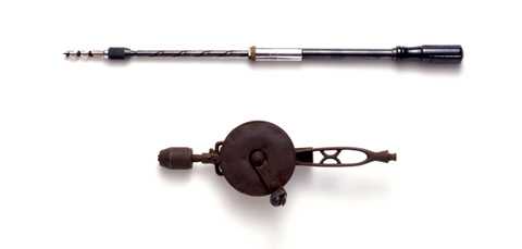 手鑽是通過轉動方向盤使齒輪旋轉,使錐尖旋轉開孔。
