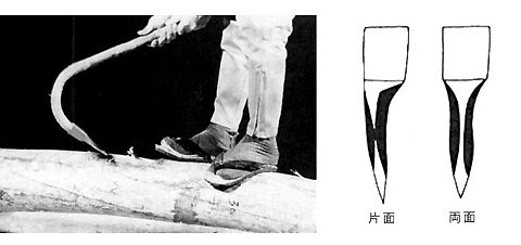 蝗蟲3773;用於在部件的上面爬起來。將木材削成角材,或是小屋梁的座取、破風的粗削等粗糙工作,地板柱子等將吊痕跡直接裝飾性地保留下來,也用於鑿子完成。