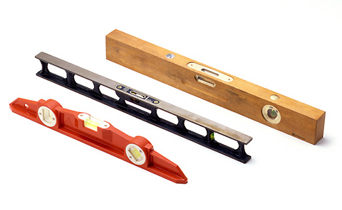 在木製及金屬製的具有正確表面的尺子上縱橫安裝了2個水平玻璃杯。用於通過氣泡的移動來調查部件的水平或垂直是否正確。
